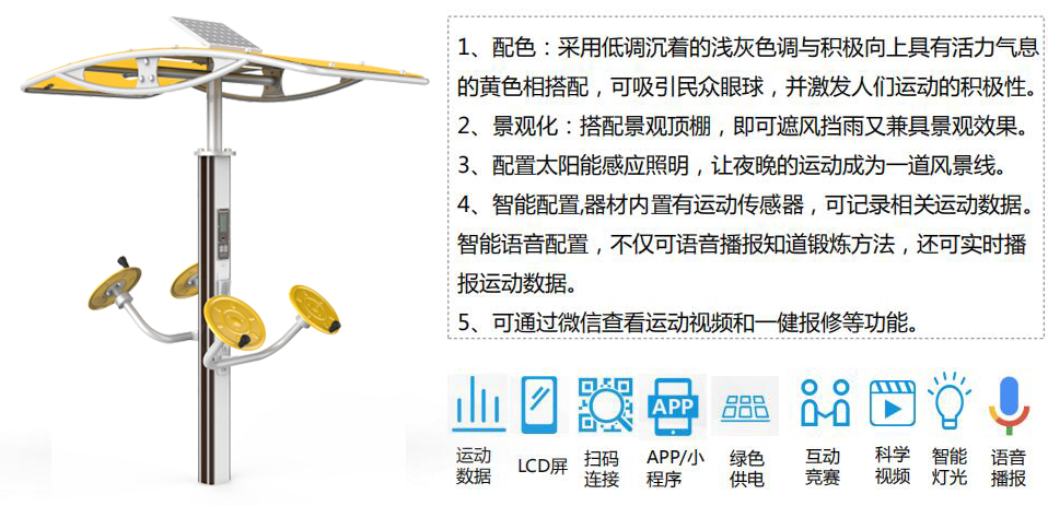 suncitygroup太阳集团全民健身产品涵盖健身路径、运动场馆、篮乒气羽排等产品,分为多个系列,先进的制造工艺、严苛的质量检测,确保产品性能优良、品质安全可靠,让运动简单科学。并将全民健身器材(户外路径器材、体育场馆等产品)进行智能化升级和互联,实现全人群覆盖、全场景智能,让运动赞美生活。