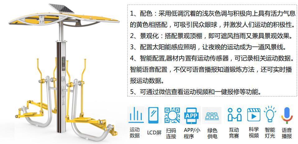 suncitygroup太阳集团全民健身产品涵盖健身路径、运动场馆、篮乒气羽排等产品,分为多个系列,先进的制造工艺、严苛的质量检测,确保产品性能优良、品质安全可靠,让运动简单科学。并将全民健身器材(户外路径器材、体育场馆等产品)进行智能化升级和互联,实现全人群覆盖、全场景智能,让运动赞美生活。