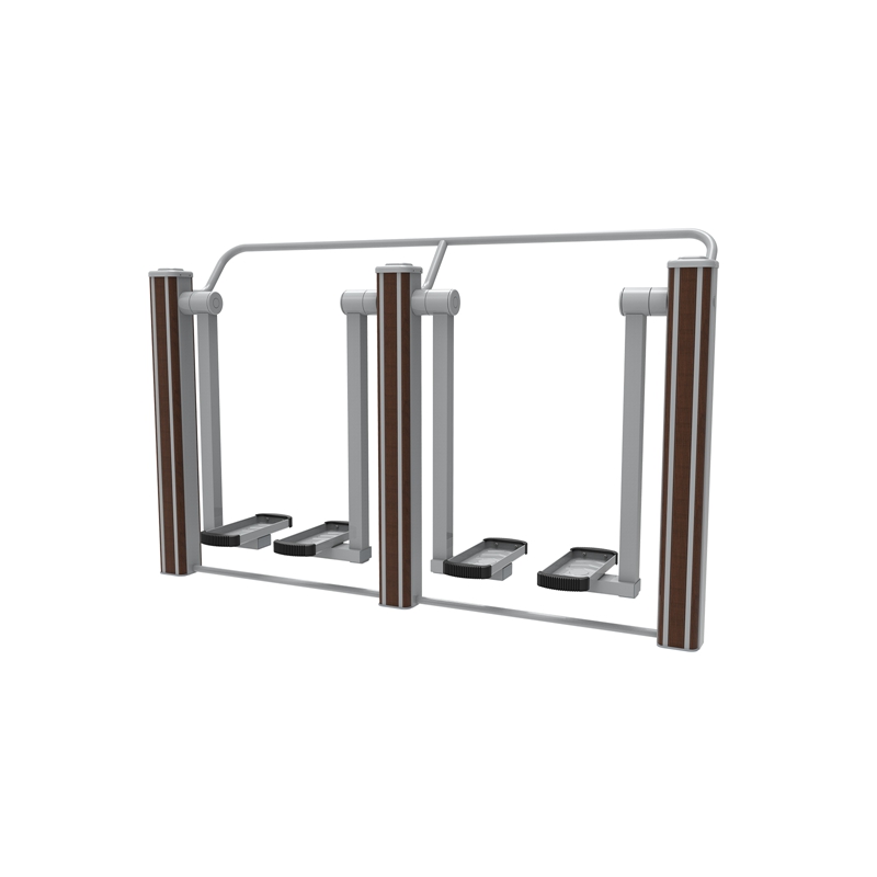 锻炼方法:a.扶杠太空漫步:手握扶手、脚踏踏板, 两脚前后走动;b.不扶杠太空漫步:两手不扶扶手,自然摆动。脚踏踏板,两脚前后走动。