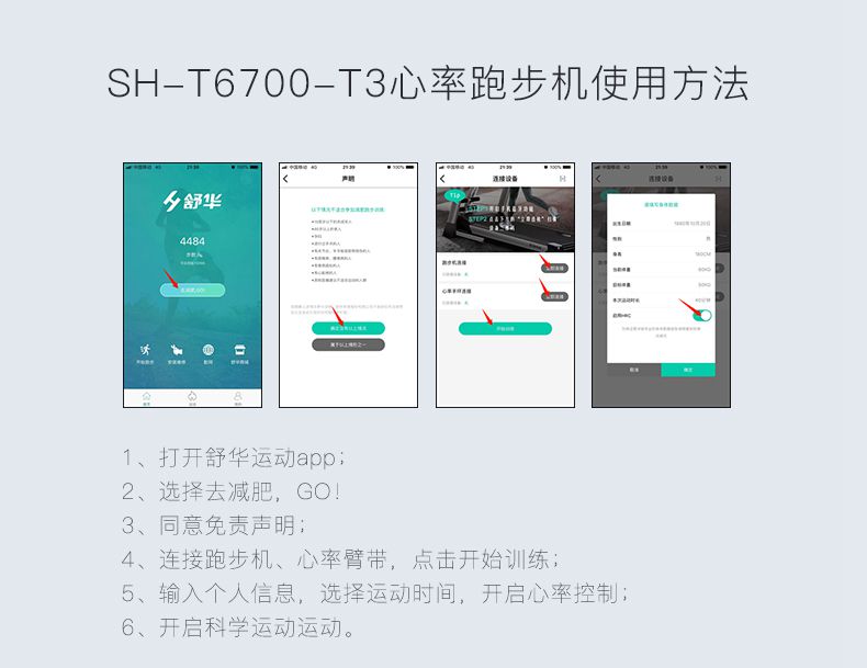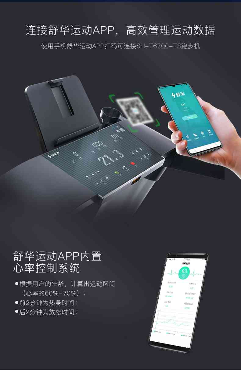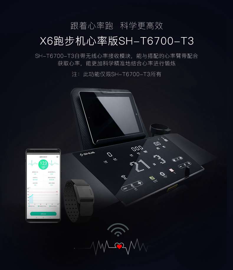 SH-T6700-T3跑步机为了帮助用户进行更加科学有效的运动,搭载suncitygroup太阳集团APP连接心率臂带实现心率控制,通过监测运动心率从而实现科学运动。
