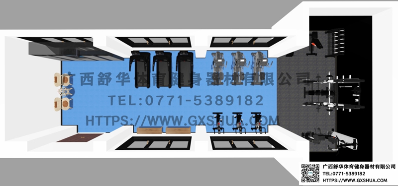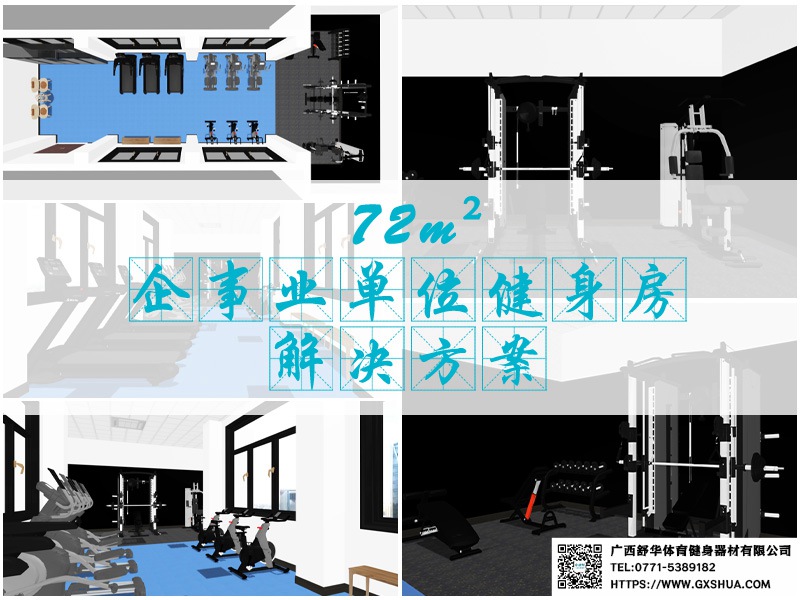 此方案要求面积小于72m²,适用于企事业单位、酒店会所、楼盘社区、工作室、学校等健身场所,能满10-15人同时健身使用。(方案根据场地空间大小、预算、产品需求等进行配置仅为启发性参考)