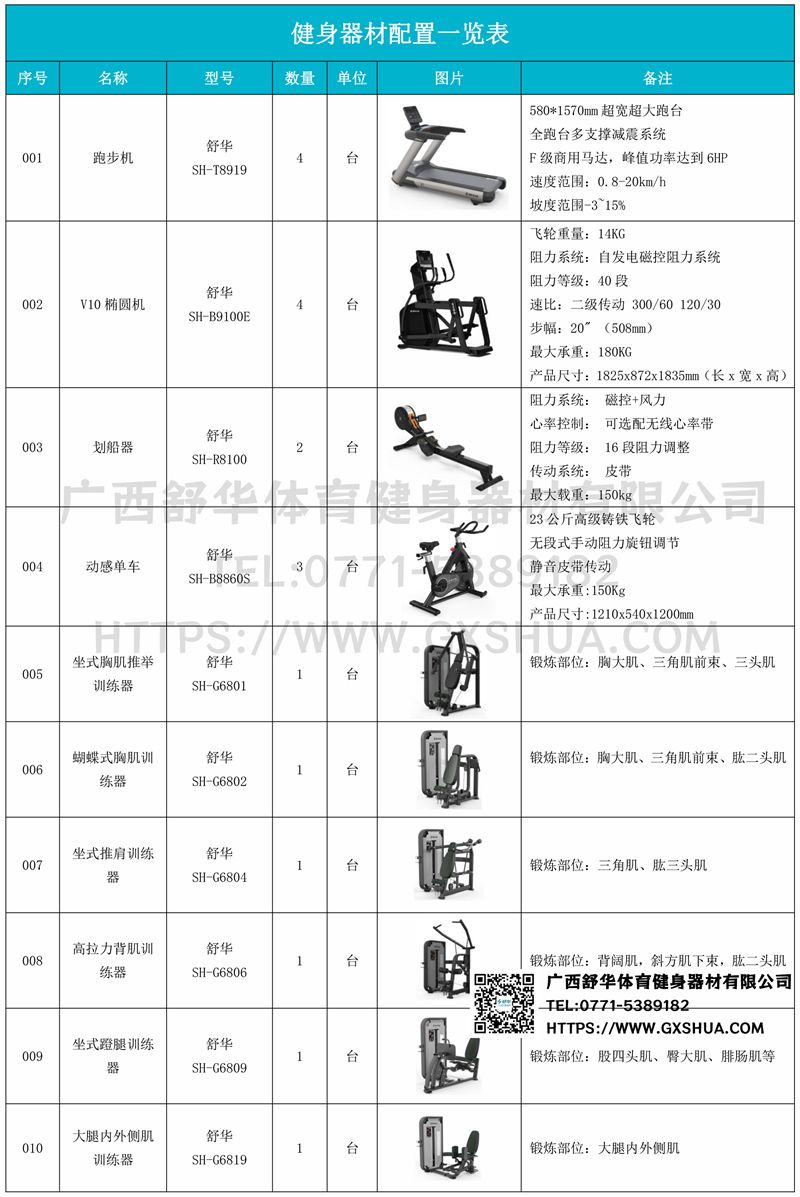 1.suncitygroup太阳集团V9跑步机SH-T8919*4台-580*1570mm超宽超大跑台-跑感舒适,跑台整体安全稳定;全跑台多支撑减震平台,保证跑台超强支撑力,达到180kg支撑,满足专业健身房需求。F级商用马达-超强马达,AC 3.0HP 交流,峰值功率达到6HP,F级商用品质。速度范围达到0.8-20km/h;V9跑步机可实现跑台扬升功能,坡度范围-3~15%,满足客户不同的锻炼需求。