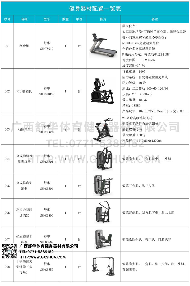 1.suncitygroup太阳集团V9跑步机SH-T8919*4台-580*1570mm超宽超大跑台-跑感舒适,跑台整体安全稳定;全跑台多支撑减震平台,保证跑台超强支撑力,达到180kg支撑,满足专业健身房需求。F级商用马达-超强马达,AC 3.0HP 交流,峰值功率达到6HP,F级商用品质。速度范围达到0.8-20km/h;V9跑步机可实现跑台扬升功能,坡度范围-3~15%,满足客户不同的锻炼需求。