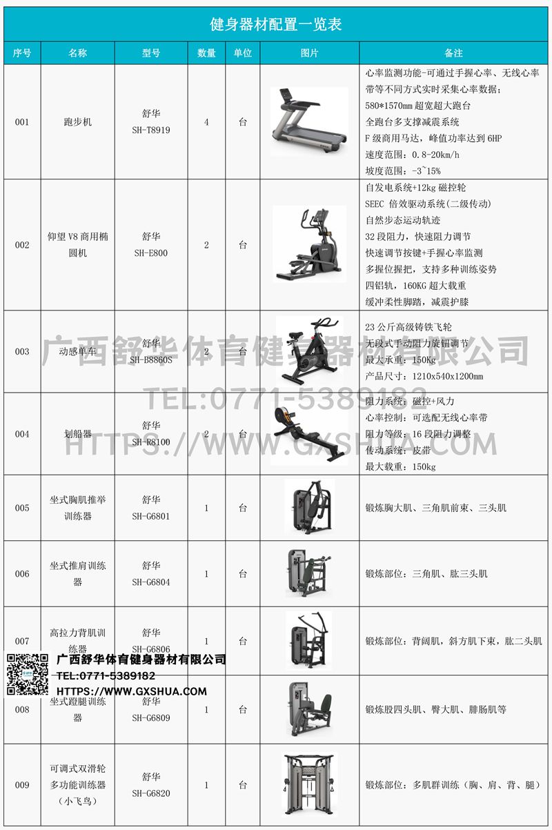 1.suncitygroup太阳集团V9跑步机SH-T8919*4台-580*1570mm超宽超大跑台,全跑台多支撑减震平台,保证跑台超强支撑力,达到180kg支撑,满足专业健身房需求。F级商用马达-超强马达,AC 3.0HP 交流,峰值功率达到6HP,F级商用品质。速度范围达到0.8-20km/h;V9跑步机可实现跑台扬升功能,坡度范围-3~15%,满足客户不同的锻炼需求。