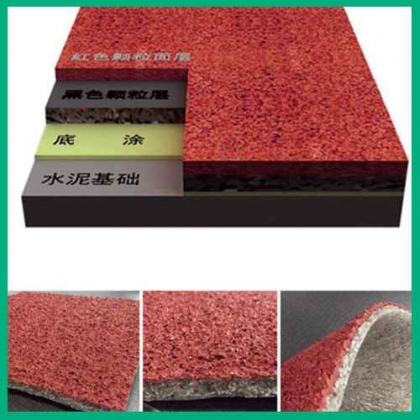 透气型塑胶跑道材料是由橡胶黑颗粒为底层,聚氨酯颗粒与塑胶浆为面层铺设组成的高性能塑胶结构。具有使用寿命长、综合性能适中、施工快捷等优点,它最经济、价格最低廉,而且不会有鼓泡现象发生,同时也减少了地基经费的投入。适用于中小学田径场地铺设。