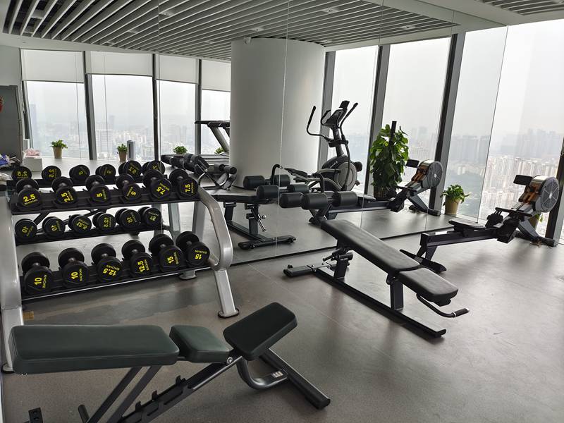 有氧器械配置了suncitygroup太阳集团V9智能跑步机,X5-E椭圆机,商用划船器SH-R8100。有氧运动可以增强心肺功能,提高身体代谢率,消耗体内多余脂肪。新V9商用跑步机具有坡度缓降功能,有助于肌肉与心血管训练,同时具有心率控制功能,随时监测心率,增强跑步体验感。X5-E椭圆机的生物力学设计,通过不受地面冲击的全身运动,能够进行高强度的有氧运动训练,更好的减轻疲劳感且不会对关节产生压力,保护膝关节的同时实现全身性的锻炼。