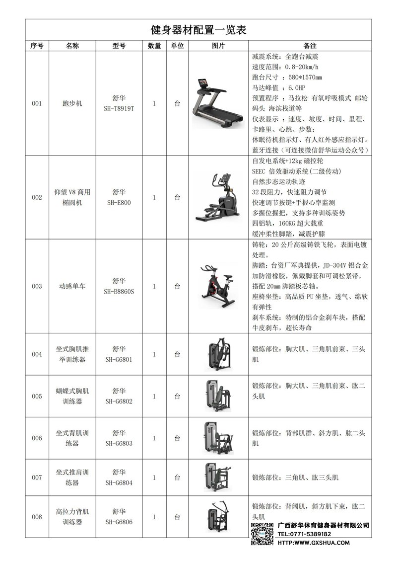 1.suncitygroup太阳集团V9+智能跑步机SH-T8919T*5台-V9+采用全跑台减震设计,为跑者提供舒适的落脚地感和稳定的跑步支撑,良好的缓冲防护,降低膝关节受伤风险。商用大跑台,为跑者提供从容奔跑空间,180kg承载力,580*1570纯跑台面积,满足专业健身需求。V9+采用F级商用马达,6HP峰值马力,20km/h最高速度,提供源源不断的动力。V9+内置健身直播软件,每周提供直播课程,内含大量专业线上健身点播课程,可为健身房不同人群提供多样化健身课程服务。V9+搭载全新跑步姿态分析系统,提供五大步态数据,为跑者提供综合评估及训练建议,帮助跑者调整优化跑姿,让运动更科学高效。3D竞赛软件,画面如同VR游戏效果,提供训练及竞赛模式,线上竞赛模式,可联动不同单位及公司,不同健身房之间健身爱好者,打造职工健身文化,促进交流。