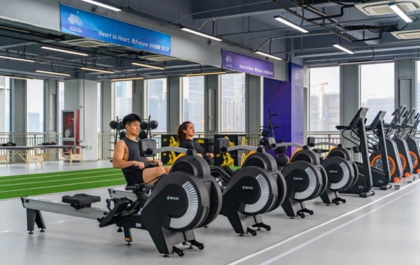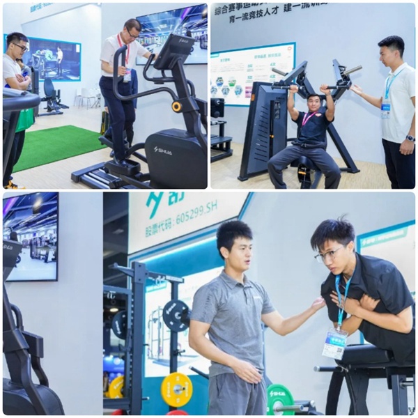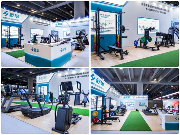 suncitygroup太阳集团体育展台精心布局,分为ESD有氧训练区、分动式力量训练区和综合体能训练区三大核心区域,全方位展示“综合赛事运动员保障训练中心解决方案”。