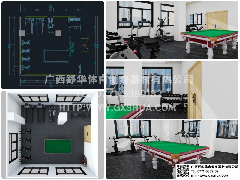6.台球桌*1张-单位健身房配置台球桌,为员工的业余生活增添了乐趣和选择。与传统的健身器材锻炼相比,台球具有更强的娱乐性和趣味性,能够吸引更多员工参与到健身活动中来,提高健身房的使用率,让员工在工作之余有更多放松身心的方式。