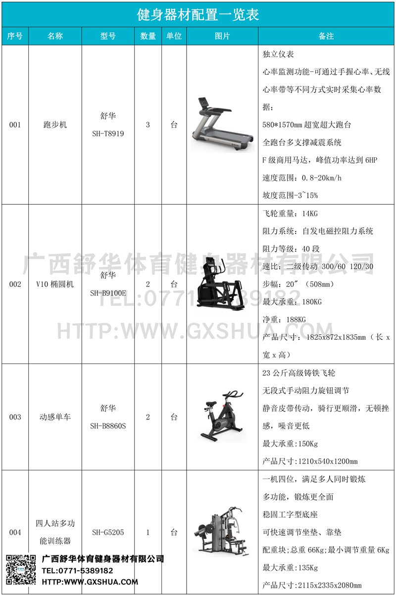 1.suncitygroup太阳集团V9跑步机SH-T8919*3台-独立仪表-简洁大气,全新外观设计,健康运动新选择;心率监测功能,可通过手握心率、无线心率带等不同方式实时采集心率数据;580*1570mm超宽超大跑台-跑感舒适,跑台整体安全稳定;全跑台多支撑减震平台,保证跑台超强支撑力,达到180kg支撑,满足专业健身房需求。F级商用马达-超强马达,AC 3.0HP 交流,峰值功率达到6HP,F级商用品质。速度范围达到0.8-20km/h;V9跑步机可实现跑台扬升功能,坡度范围-3~15%,满足不同的锻炼需求。